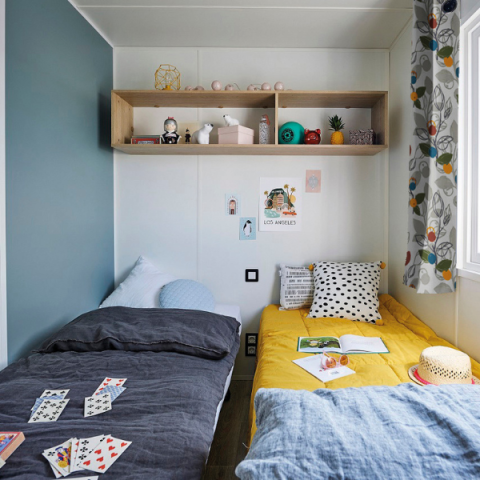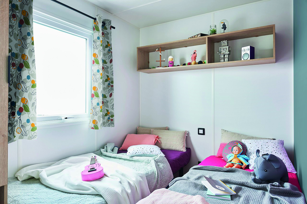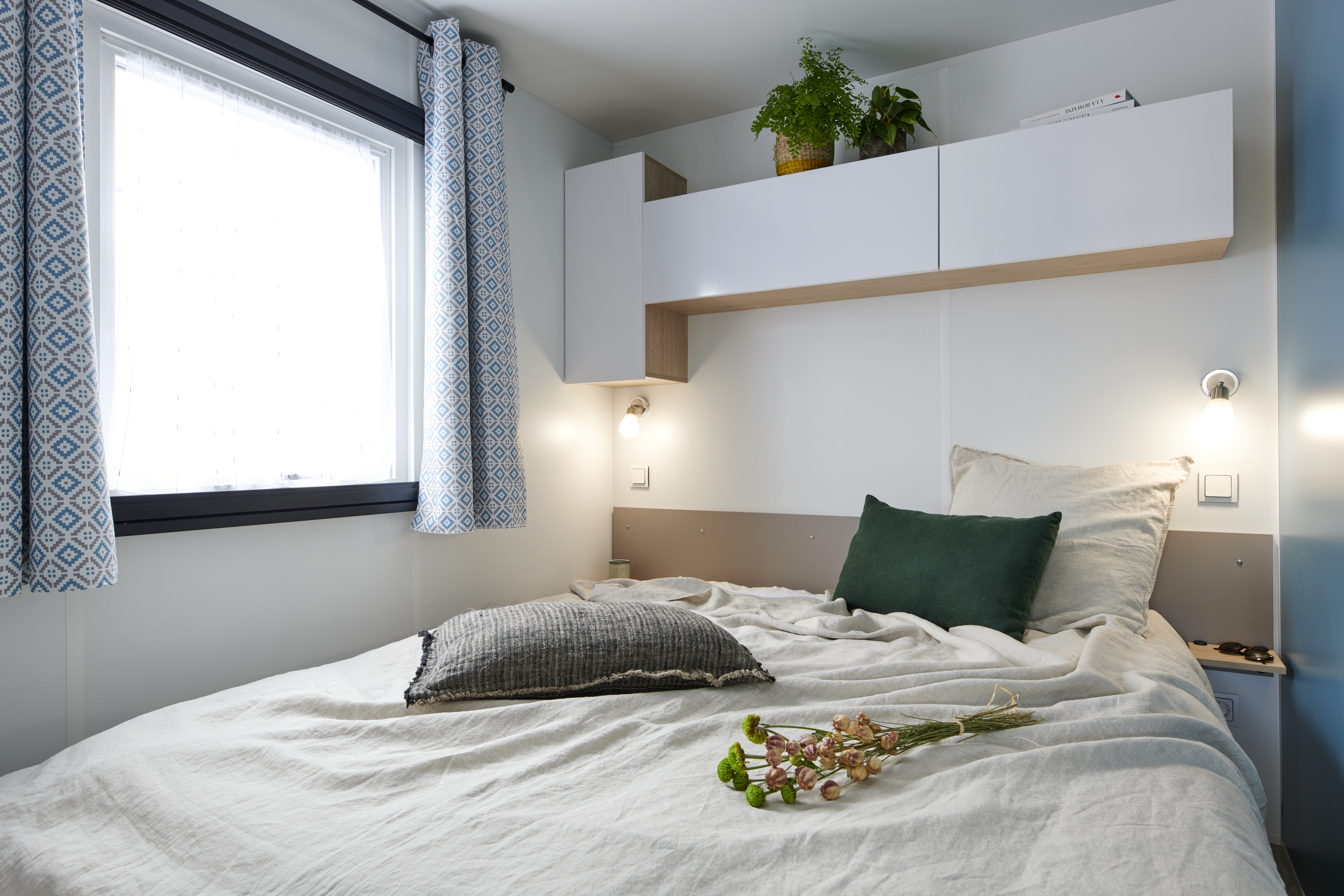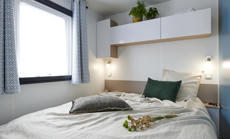 For a good night's sleep, our Sorlock mobile home includes a bedroom with a double bed and a bedroom with 2 single beds, each equipped with duvets and pillows, as well as heating.