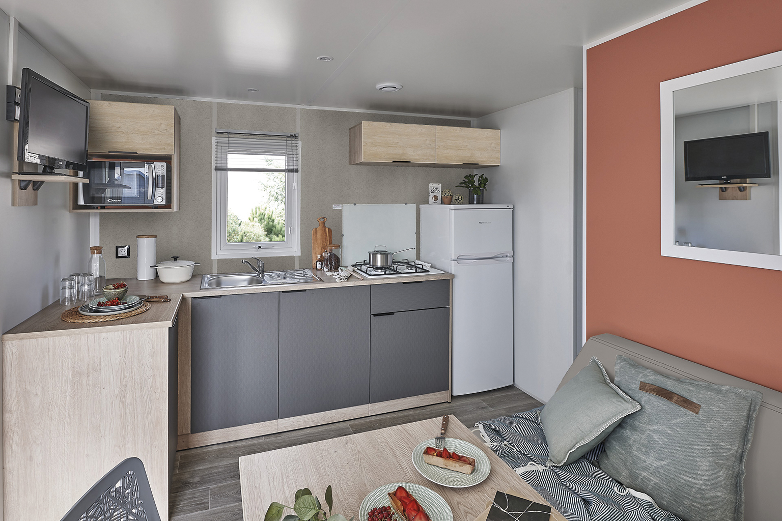 You will discover the essential equipment for a pleasant stay in the rental at Camping du Petit Bois in southern Brittany.