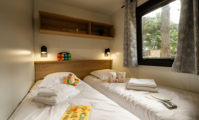 The Sunêlia Luxe Mine d'Or invites you to an exceptional holiday experience for up to 6 people. The master suite features a 160x200 bed surrounded by comfort. The two other bedrooms welcome children with 80x190 beds. The combination blinds with mosquito nets in the rooms add a touch of comfort for peaceful nights. All beds are carefully prepared for your arrival.