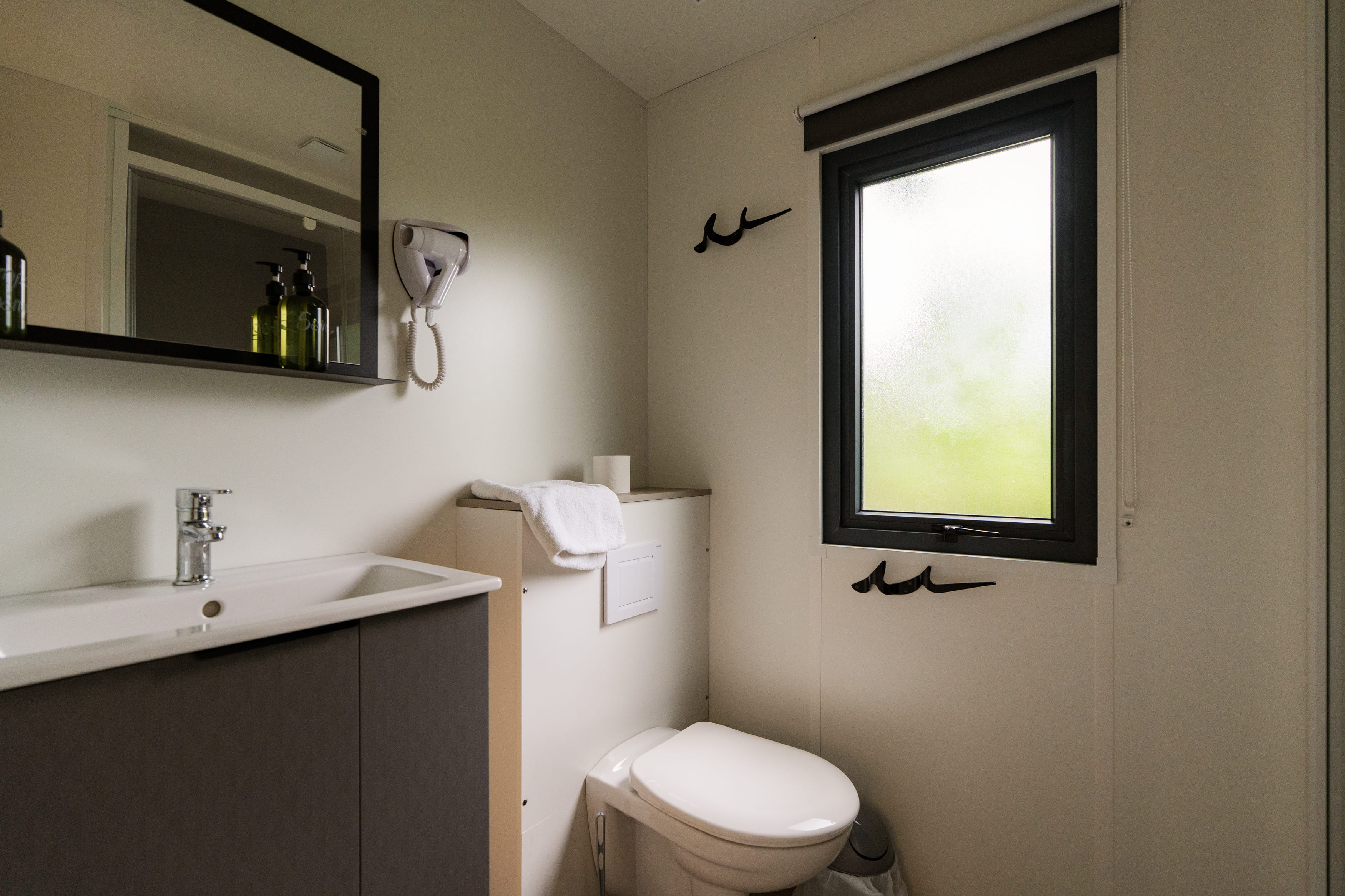 The stay is made even more enjoyable with the included cleaning service. The fully equipped kitchen adds a touch of convenience with an electric plancha, toaster, capsule coffee maker, and kettle. To enjoy the outdoors, a covered terrace and a podium area totaling 7.50m x 3m provide spacious space. Discover the ultimate comfort of Sunêlia Luxe Mine d'Or, your high-end holiday haven.