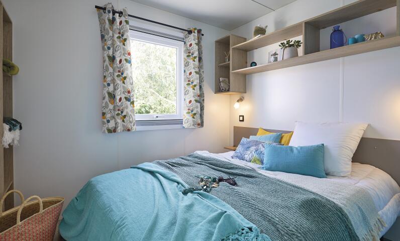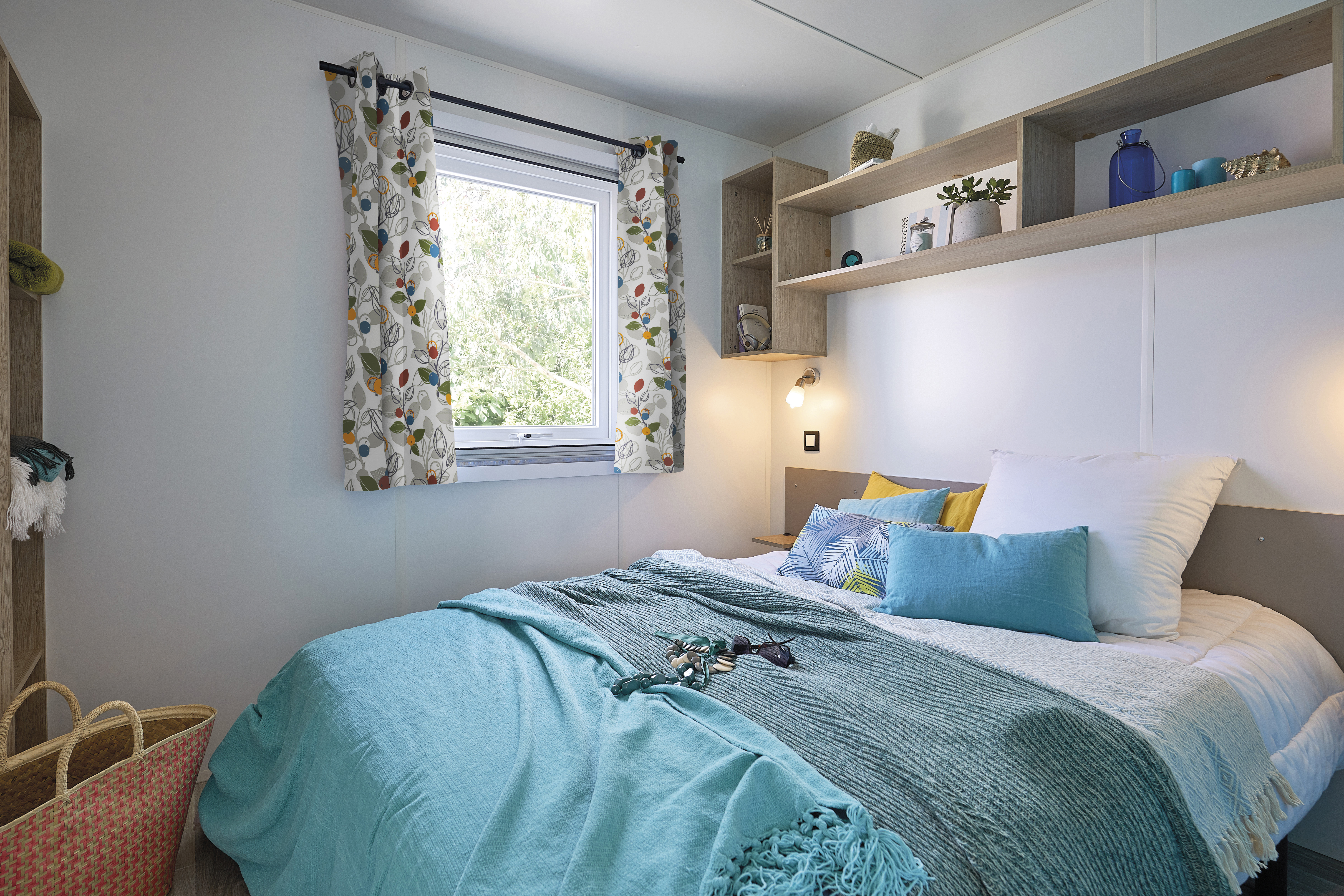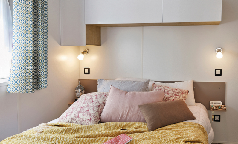 Pour passer de bonnes nuits grâce à ses stores occultants, notre mobil home Sunêlia Prestige Belle-Ile comprend une chambre avec un lit Queen size en 160x200 pour 2 pers et deux chambres avec 2 lits de 1 pers chacune équipées avec couettes et oreillers et chauffage.