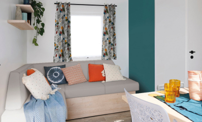C'est la location idéale en camping pour passer des moments de gaieté et bonne humeur jusqu'à 6 personnes en mobil home prestige.