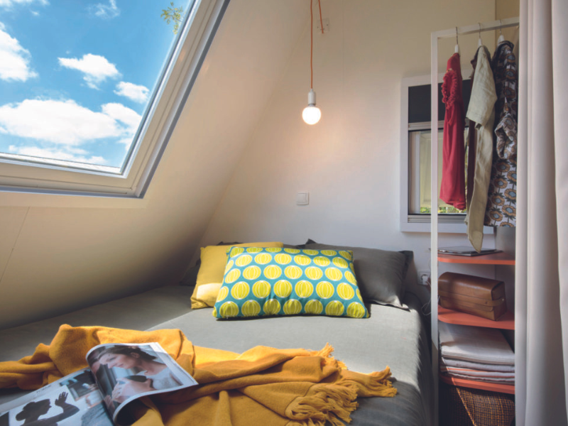 Breng goede nachten door in de accommodatie voor 4 personen: 1 slaapkamer met 1 bed van 140x190 en 1 slaapkamer met 2 eenpersoonsbedden waarvan één uitschuifbaar, verduisterende gordijnen, 4 kussens, 1 dekbed per bed en verwarming.