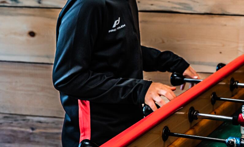 In de speelzaal kunnen tieners zich ontspannen, elkaar uitdagen en samen tijd doorbrengen, ook buiten de animatieactiviteiten om. Het is een gezellige, vaak levendige ruimte waar ontmoetingen op natuurlijke wijze plaatsvinden en waar men eenvoudige momenten deelt, typisch voor de vakantiesfeer.